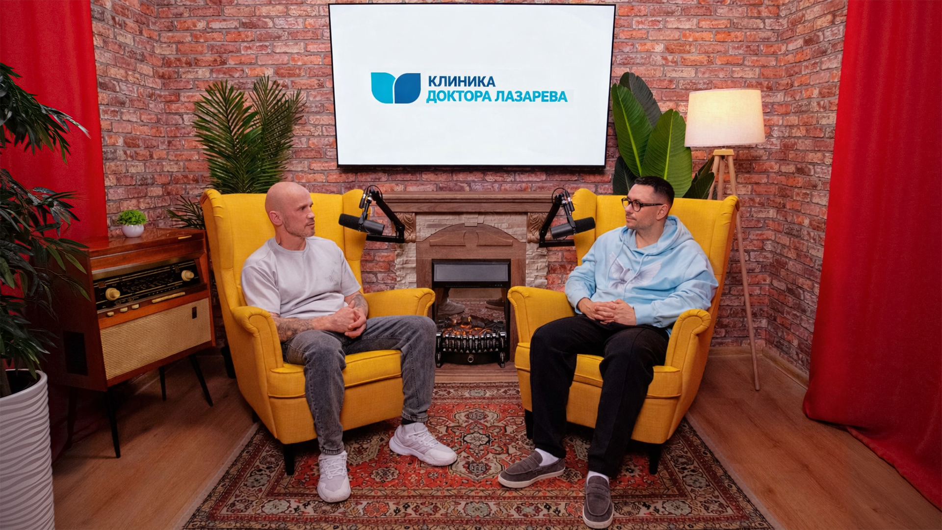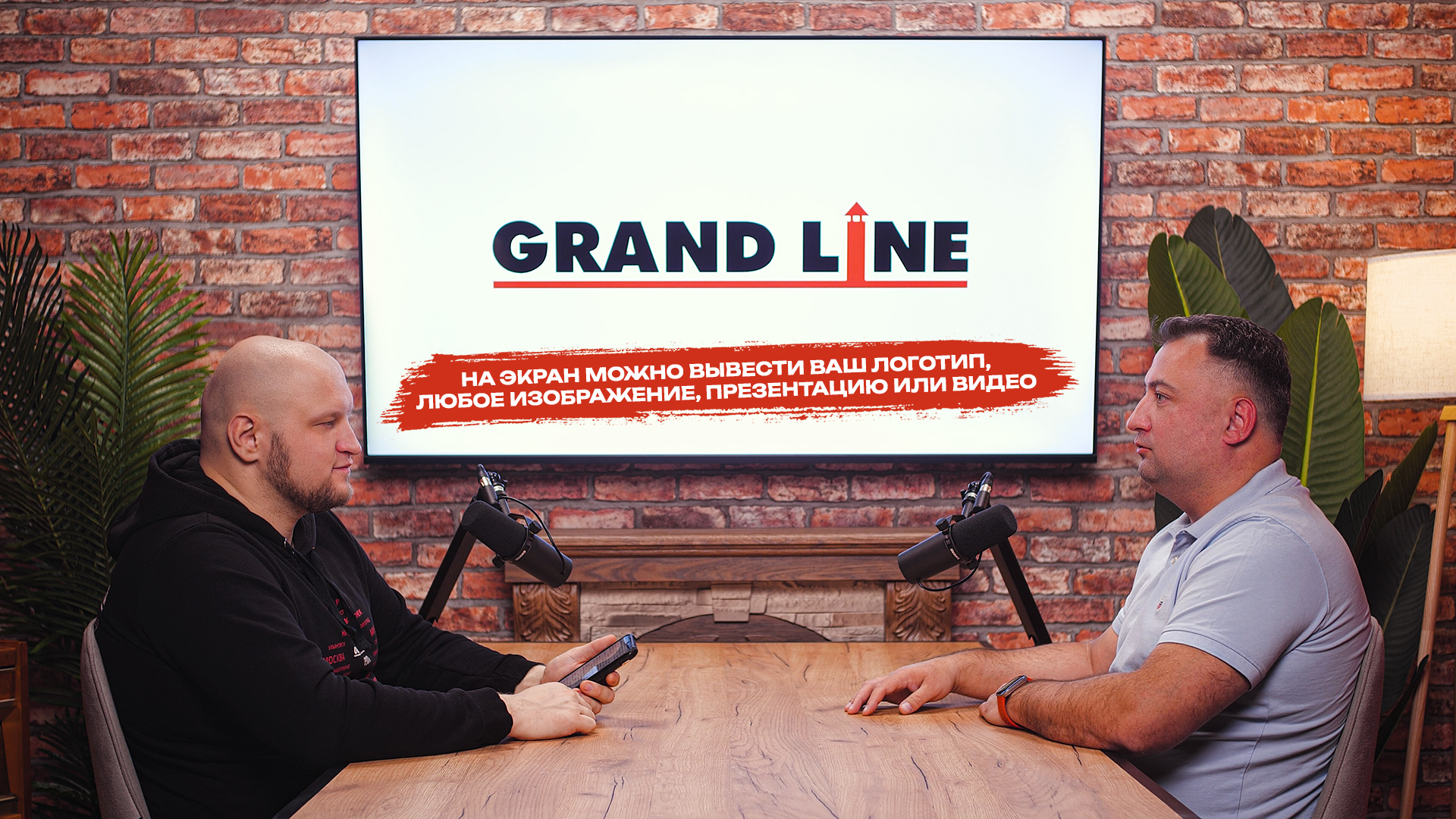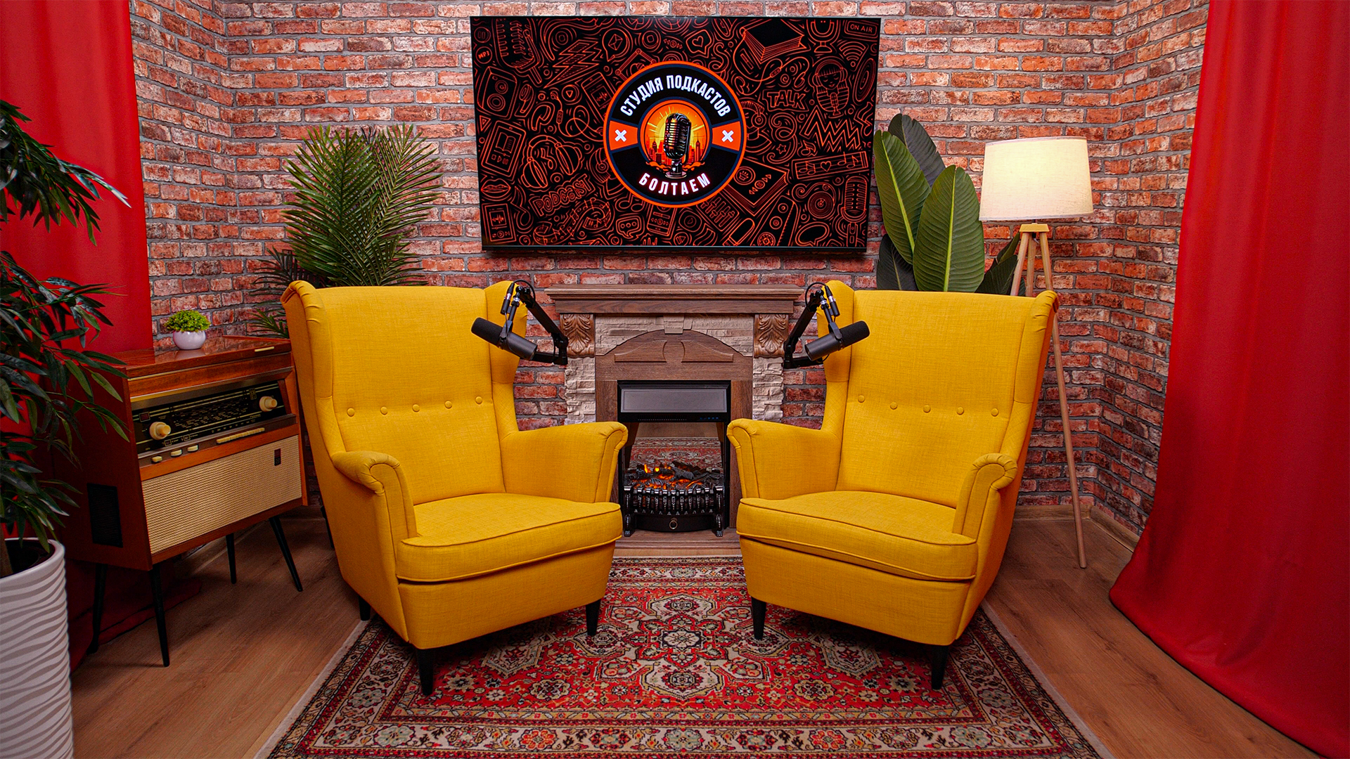 Кирпичные стены, камин для уюта и телевизор 🔥 на который можно вывести ваш логотип, любое изображение, презентацию или видео